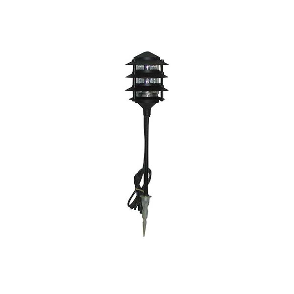 Four tier Incandescent garden light with 8′ cord, receptacle, stake, and 12″ pipe.