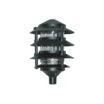 The LL series of pagoda garden fixtures have a classic look and are designed to withstand the Canadian environment. All LL series are cast units. The LL33 has 3 tiers with a clear glass globe. Maximum wattage 100w incandescent. Comes with 8′ cord and garden stake. Lamp not included.